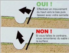 Il s'agit de planter le relève-pitch sur les bords de l'impact et non en son centre. S'il est utilisé au centre de l'impact, seule la zone touchée sera ramenée à une hauteur normale. Il faut faire le tour du trou pour réunir les bords et les ramener vers le centre en effectuant un mouvement de rotation léger. Il ne faut jamais relever le centre. Une fois que les bords sont relevés, on aplanit le tout avec son pied ou son putter